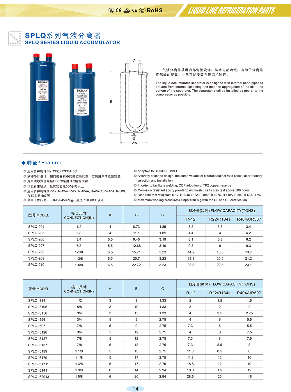 產(chǎn)品簡介:氣液分離器采用內(nèi)部彎管設(shè)計(jì),防止內(nèi)部噴濺,有助于分離器底部油的聚集,并盡可能安裝在壓縮機(jī)附近。