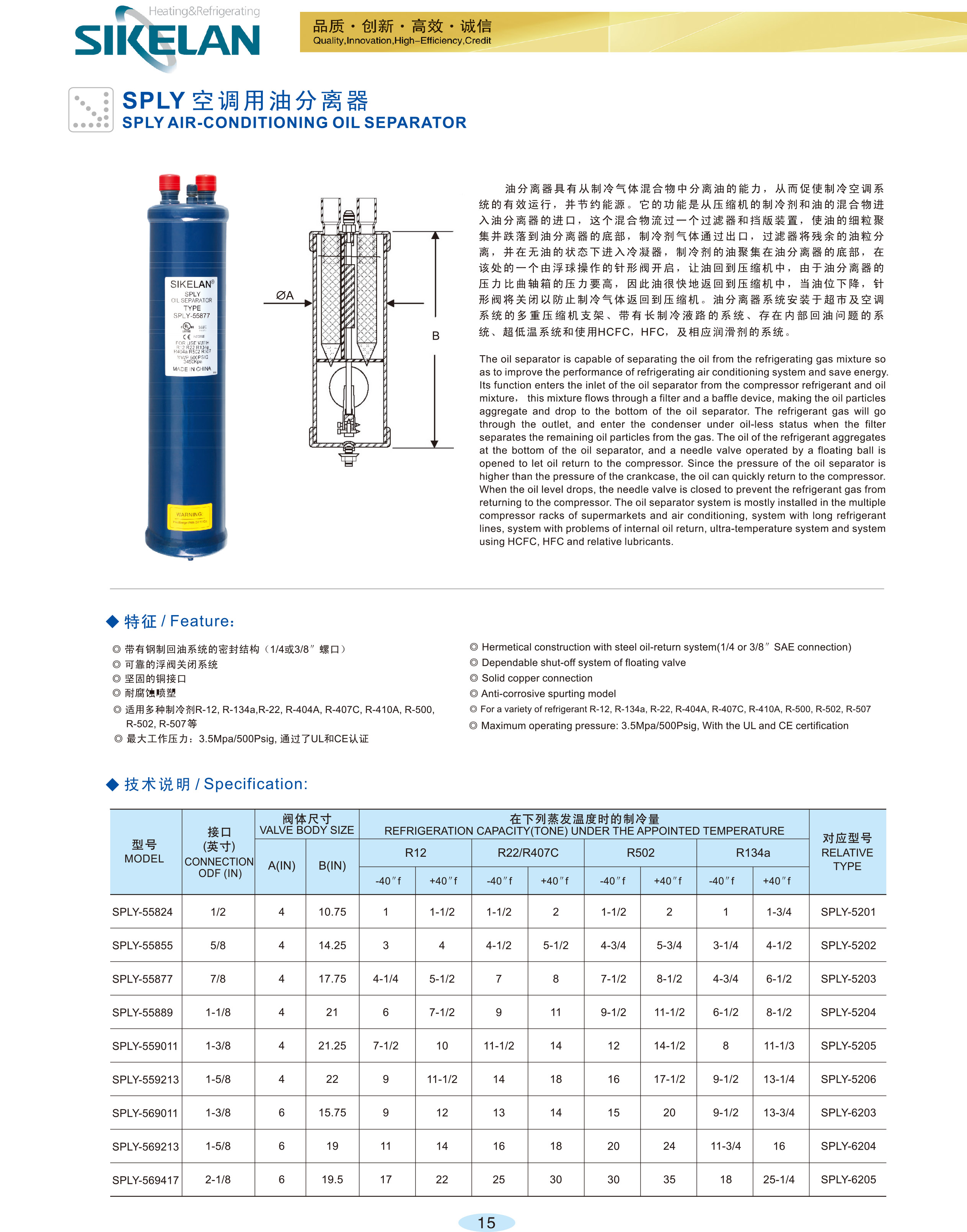 產品簡介:油分離器具有從制冷氣體混合物中分離油的能力,從而促使制冷空調系統的有效運行。并節約能源,它的功能是從壓縮機的制冷劑和油的混合物進入油分離器的進口,這個混合物流過一個過濾器和擋版裝置,使油的細粒聚集并跌落到油分離器的底部,制冷劑氣體通過出口,過濾器將殘余的油粒分離,并在無油的狀態下進入冷凝器,制冷劑的油聚集在油分離器的底部,在該處的一個由浮球操作的針形閥開啟,讓油回到壓縮機中,由于油分離器的壓力比曲軸箱的壓力要高,因此油很快地返回到壓縮機中,當油位下降,針形閥將關閉以防止制冷氣體返回到壓縮機。油分離器系統安裝于超市及空調系統的多重壓縮機支架、帶有長制冷液路的系統、存在內部回油問題的系統、超低溫系統和使用HCFC,HFC,及相應潤滑劑的系統。